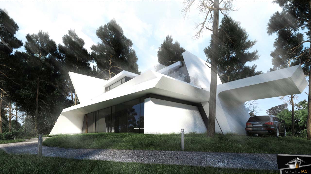El punto clave de esta vivienda es la monumentalidad de sus volúmenes dando de esta forma un carácter escultórico y de gran diseño, por lo tanto da igual desde el punto de vista que mires, pues te sorprenderán sus formas rompedoras y atrevidas.